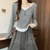 Base Layer Women's Outerwear Inner Wear with High-end and Unique Buttoned T-shirt Long-sleeved Color-matched Fake Two-piece Top