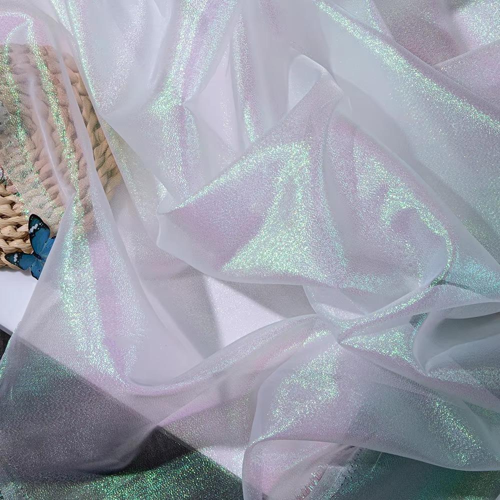 New Colorful Laser Organza Fabric 100*150cm Silk Cloth Fabric Gradient Color DIY Material Clothing Designer