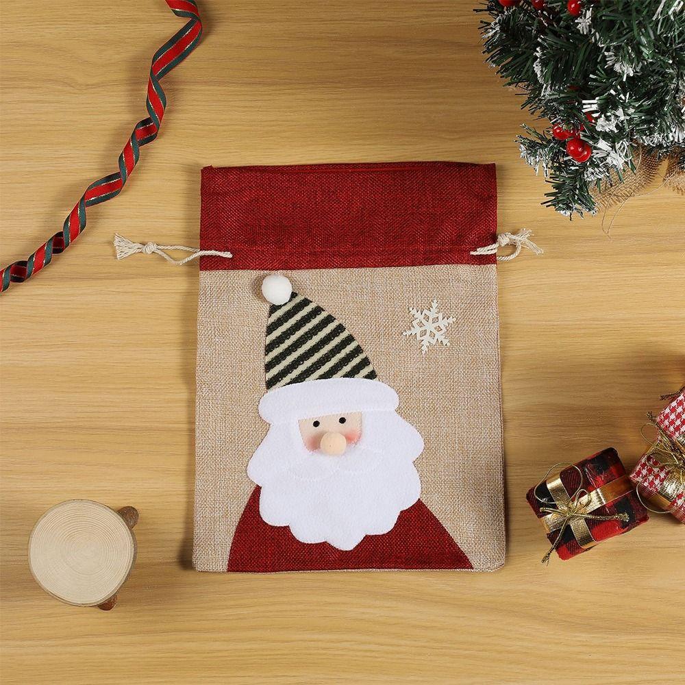 Cartoon Santa Snowman Deer Christmas Gift Bag Dimity Two Sizes Christmas Apple Bag Multicolor Large Capacity