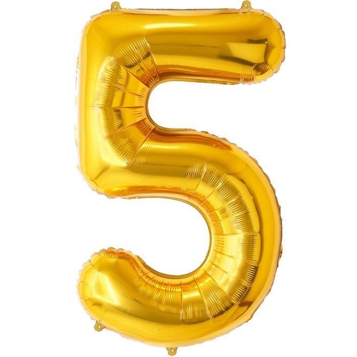 Funfest ballons anniversaire 5 ans or de 100cm – décoration anniversaire – inclus ballon 5 ans xl & paille - qualité supérieure