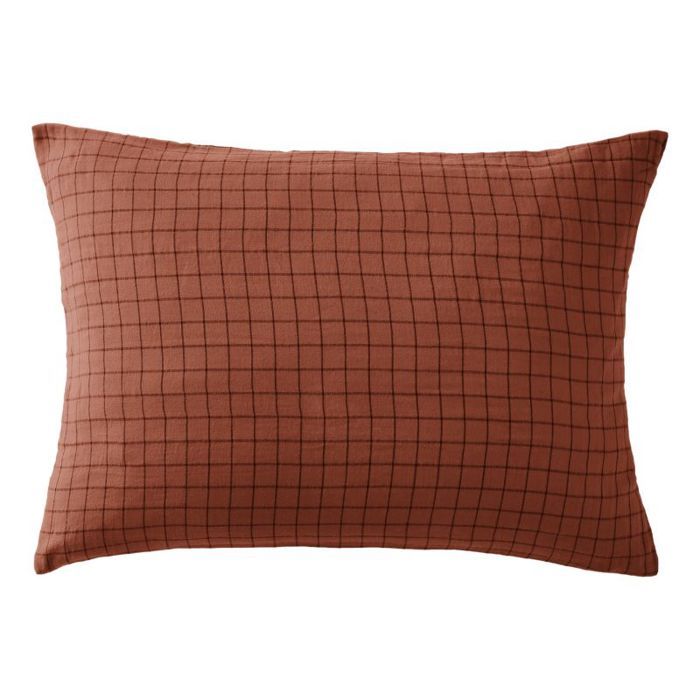 Taie d'oreiller Tissé-teint petits carreaux Déco "Gaïa Mix" 60 x 60 cm & 50 x 70 cm "Gaze de Coton" - Gaïa Mix Terracotta - 50 x 70