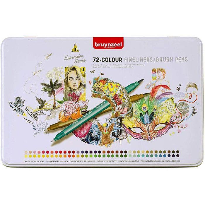 Coffret de 72 feutres - Pointes fines et pinceaux - Bruynzeel