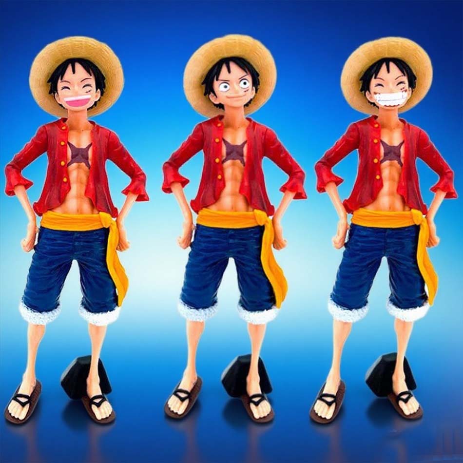 26cm One Piece Anime Figure Confident Smiley Luffy Three Form Face Changing Action Figurine Doll PVC Model Toys Collection Gifts