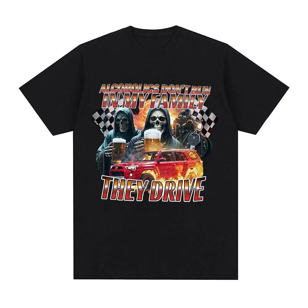 Meme T Shirt Funny Offensive Alcoholics Dont Run in My Family They Drive TShirt Skeleton Meme Graphic Tees Tshirts Unisex