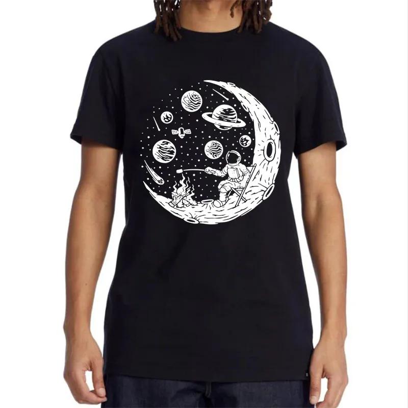 Funny Astronaut Moon Barbecue Print Unique Casual Loose Cool Men Oneck Streetwear Harajuku Allmatch Aesthetic Tshirt Tops