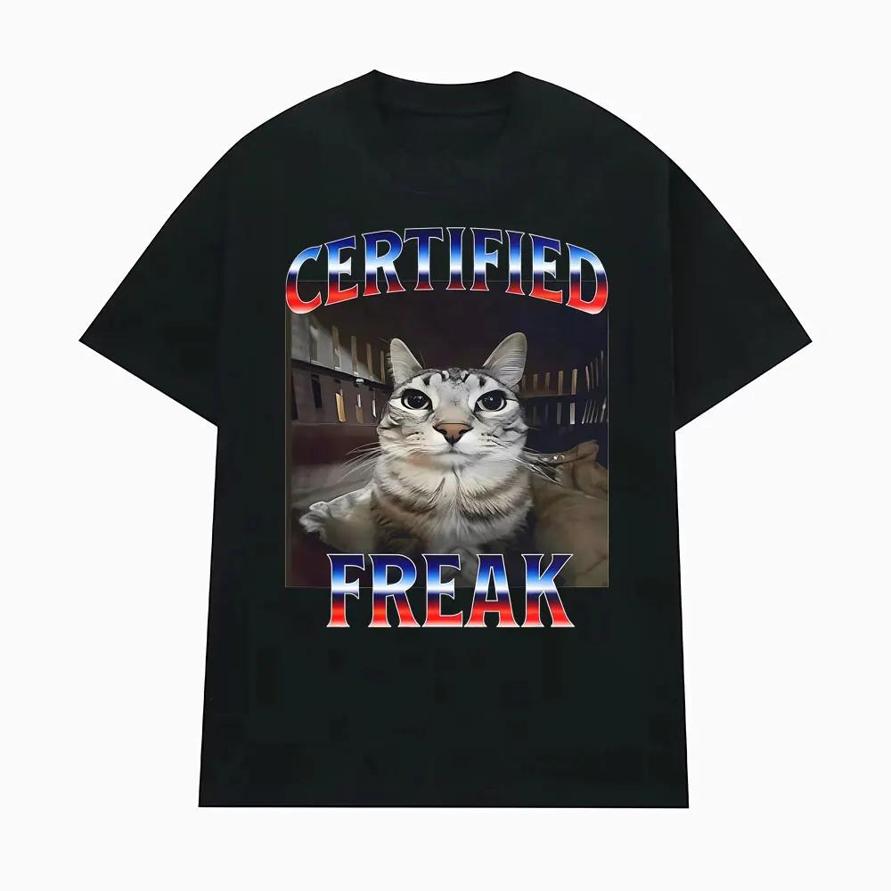 Certified Freak Funny Cat Meme T Shirts for Men Women Fashion High Quality Tshirt Male Oversized Comfort Short Sleeve Tee Shirt
