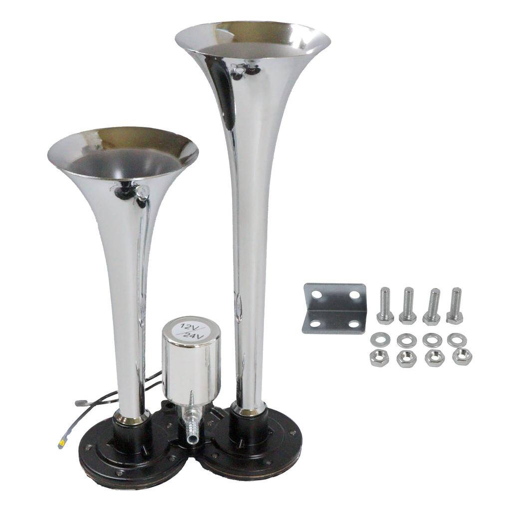 Nishihaya Long Air Horn, 180db, Yankee Horn, Compatible with 12V and 24V, Loud Sound for Trucks and Dump Trucks, Silver