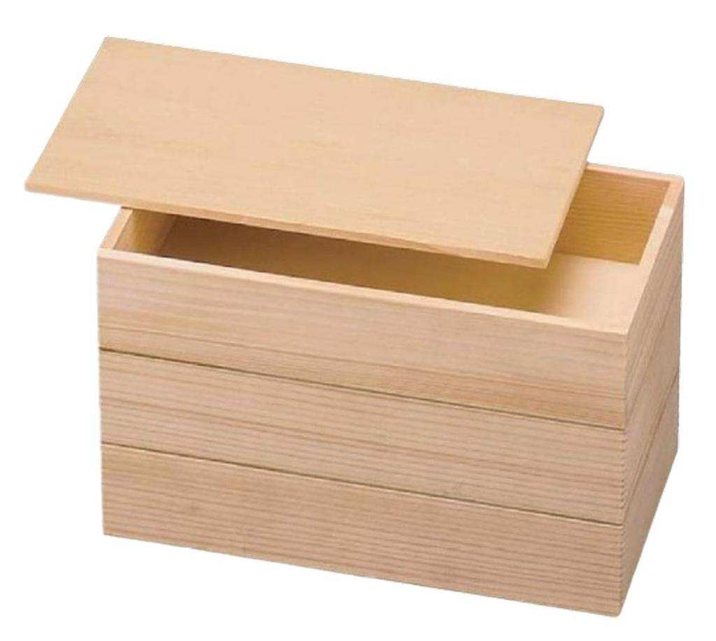 J-Kitchens 3-Tier Wooden Jubako (8.5-inch) Container, Made in Japan, 1/2 Long, Plain Wood, 25.0cm x 13.2cm x 15.3cm