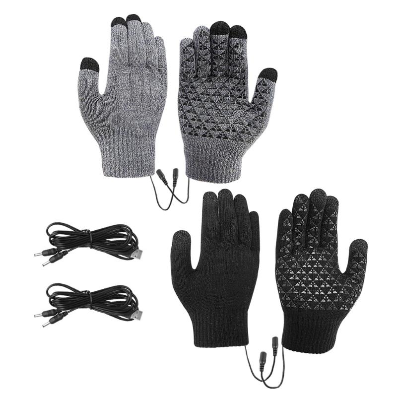 1 Pair USB Heated Gloves for Men and Women, USB Powered Heating Knitting Heating Mittens Winter Washable Hands Warmer