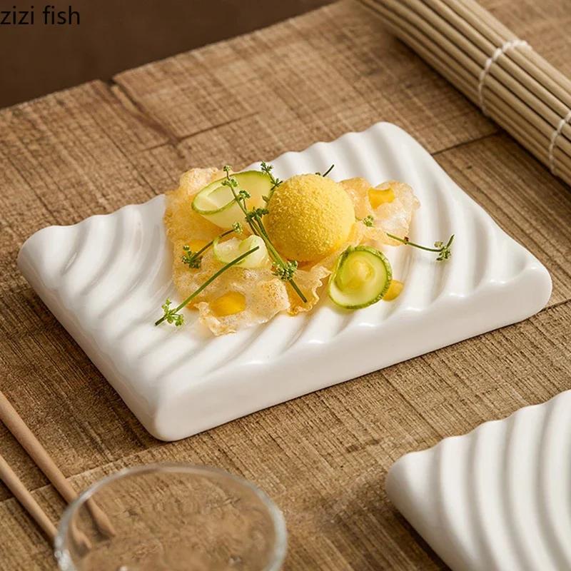 White Double-layer Ceramic Dinner Plate Irregular Texture Dessert Plate Dim Sum Plate Sushi Dish Restaurant Specialty Tableware