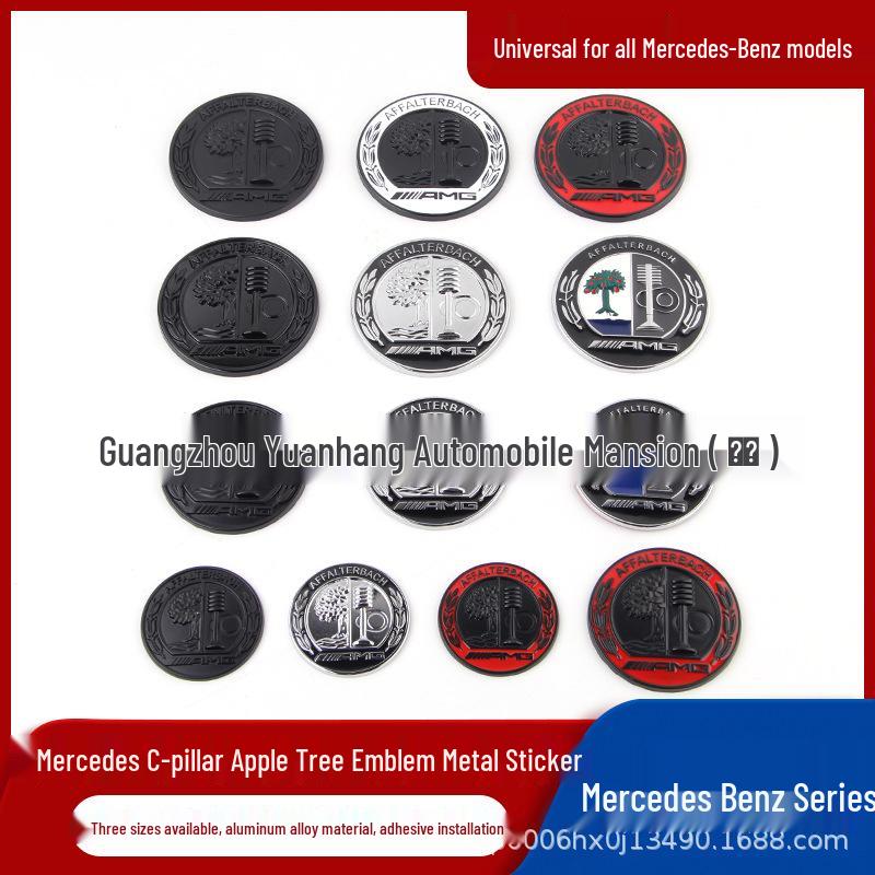 Emblemă Măr pentru Stâlpul C Mercedes Compatibilă pentru Clasa A, Clasa S, Clasa E - Autocolant Metalic Rotund Modificat cu Sigla AMG