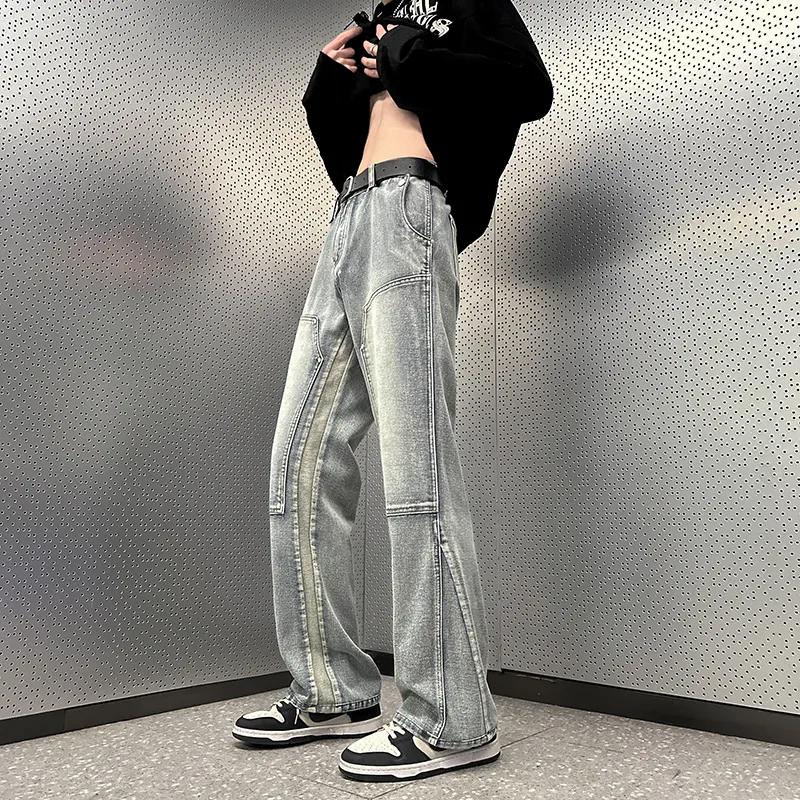 Fashion Distressed Patchwork Vintage Jeans Men's Clothing High Waist Denim Pants Wide Leg High Street American Straight Trousers