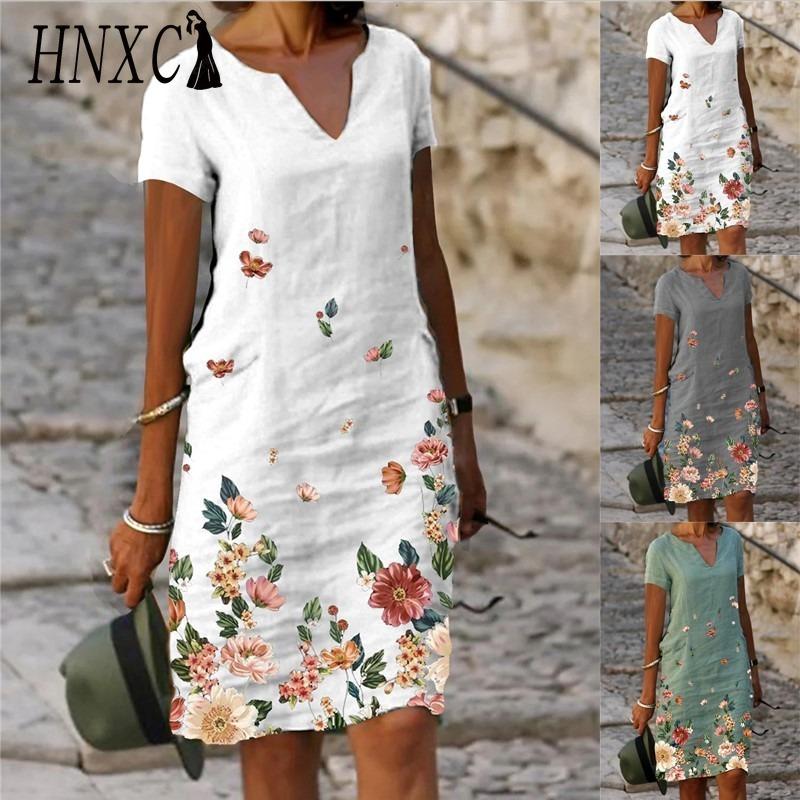 HNXC Moda dama vara primavara cu maneca scurta cu decolteu in V rochii casual