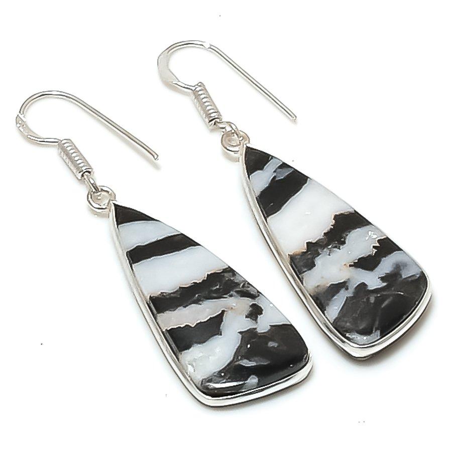 Natural Buffalo Jasper Gemstone Handmade 925 Sterling Silver Earring 1.97" AE-11498