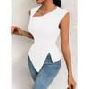 Women's Elegant Style T-shirt Spring and Summer New Slope Collar Slim Short Solid Color Top