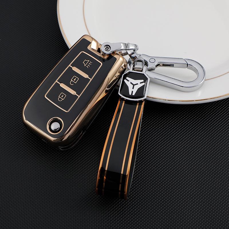 Gold-Edged TPU Key Case for Dongfeng Venucia D60/T70/M50V - Soft Rubber, 3-Button Protection for Men & Women