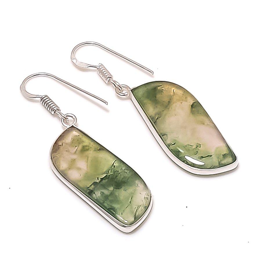 Natural Moss Agate Gemstone Handmade 925 Sterling Silver Earring 1.85" AE-11411