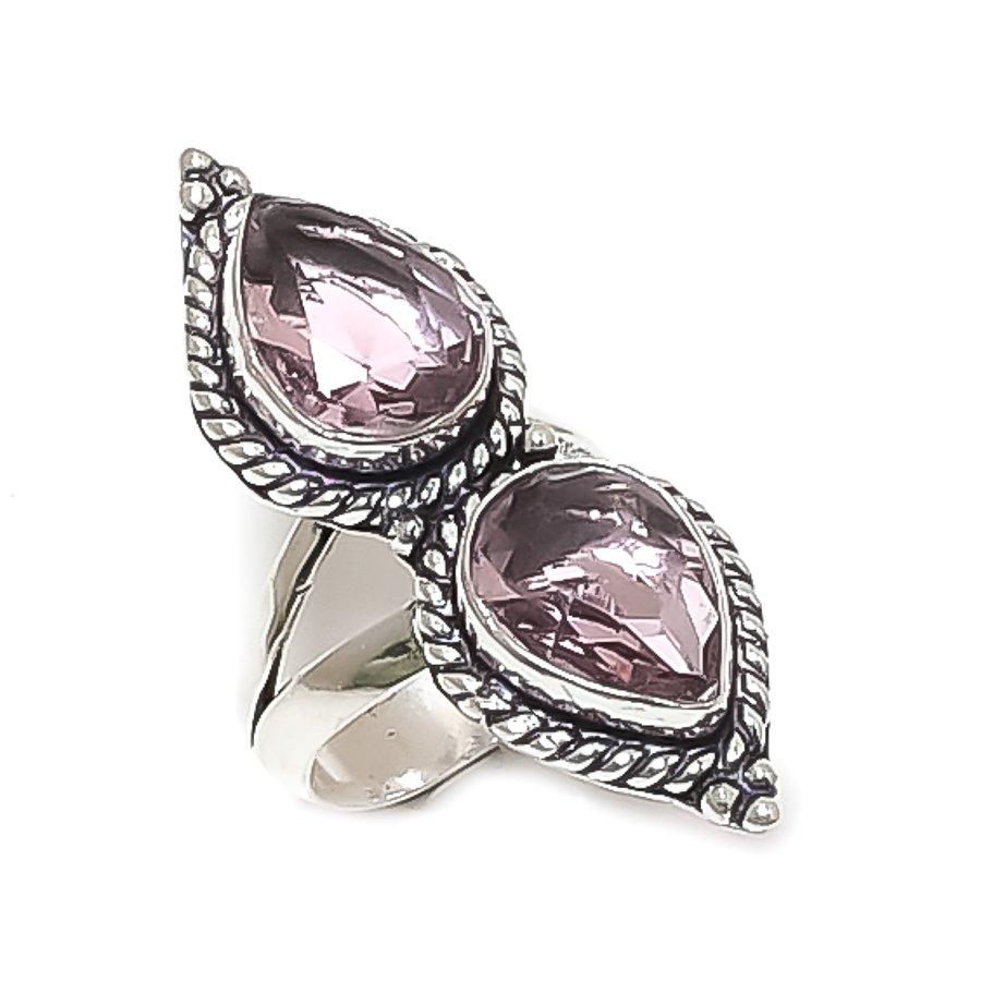 Natural Pink Kunzite Gemstone 925 Sterling Silver Jewelry Ring Size 9 AR-16770