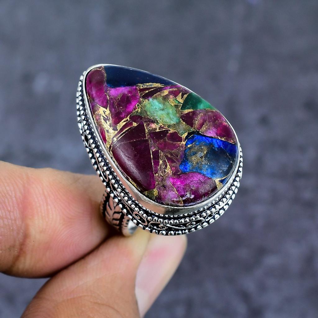 Natural Copper Ruby Zosite Gemstone 925 Sterling Silver Jewelry Ring Size 9 ET-4799