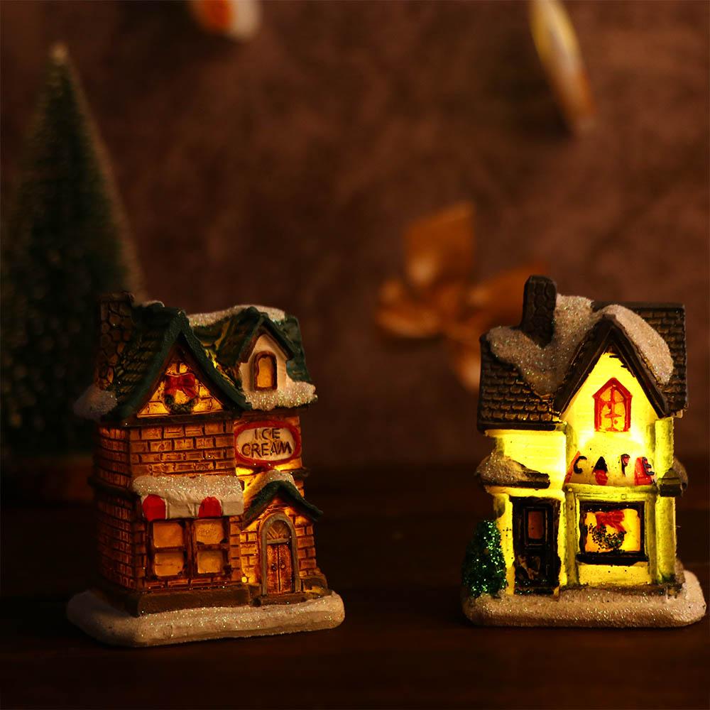 Xmas Gift Fairy Garden Mini Miniatures Resin Craft Figurine Village House Christmas Decoration LED Light Ornament