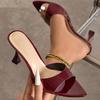 Fashionable New Ladies Pointed Toe Mirror Surface Sandals High Heels Coffee Brown Strap Thin High Heel slippers Women