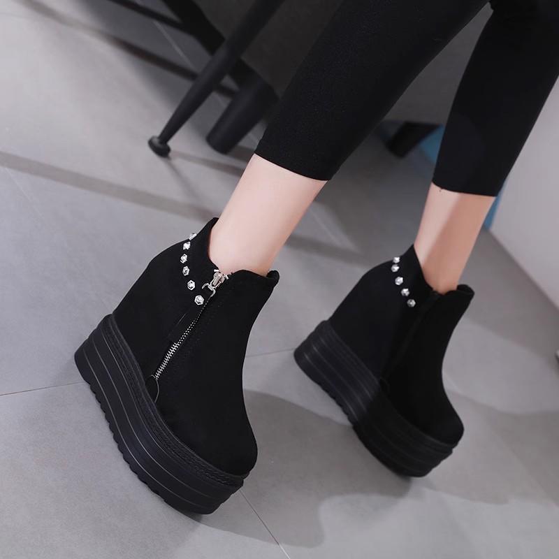 Bocanci cu toc înalt pană 13CM Platformă Talpă groasă Nituri Modă Pantofi de damă Alungire Tălpii Bocanci negri pentru stil Gotik