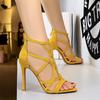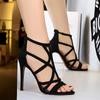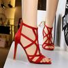 Women Roman style Thin High Heels Pumps Pointed Toe Suede Hollow Strap Party Shoes Solid Solid Ankle Zip Summer Sandals