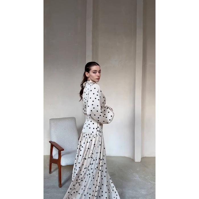 European and American women's clothing spring new fashion temperament retro polka dot bubble sleeve big swing dress