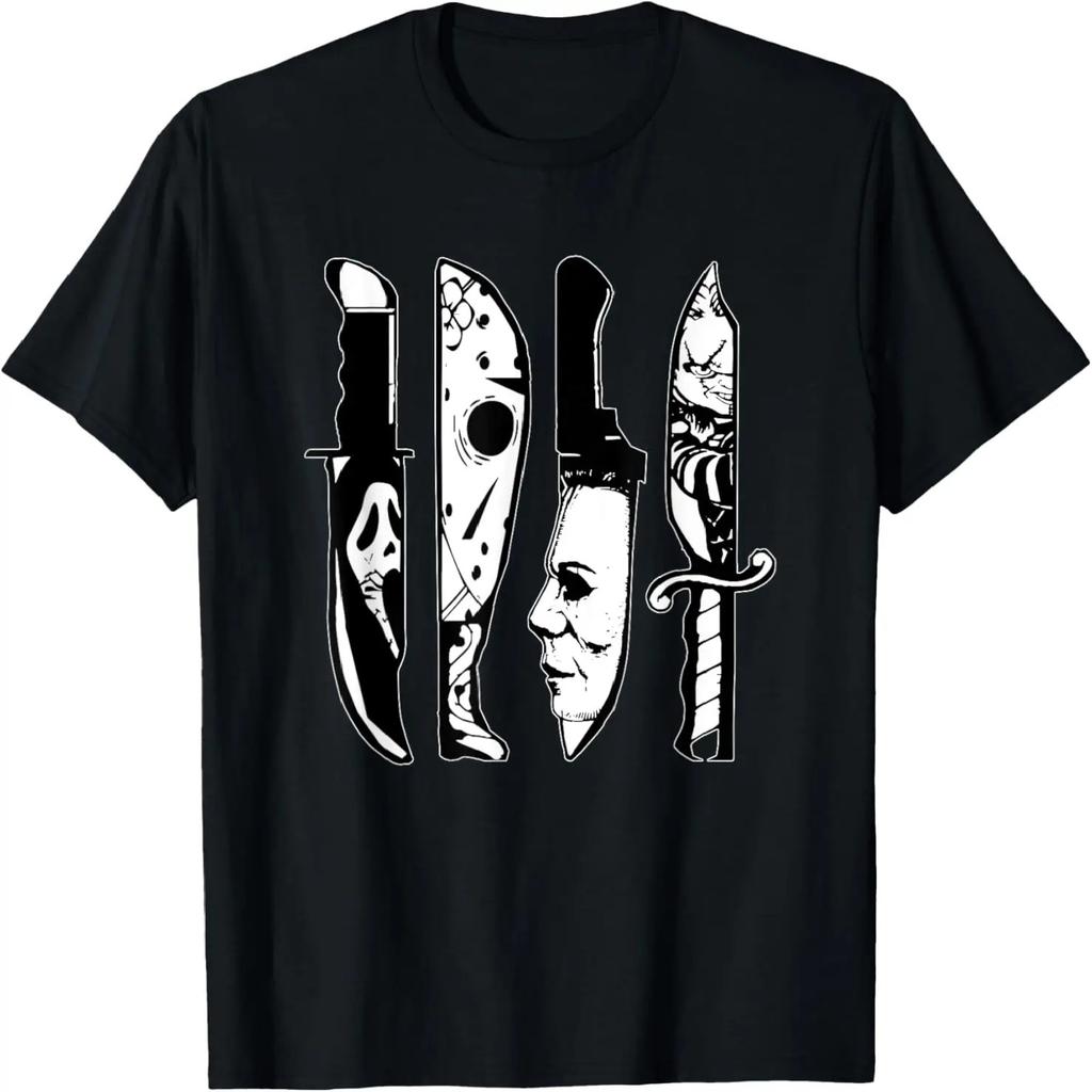 Horror Movie Characters in Knives, Funny Halloween Films T-Shirt