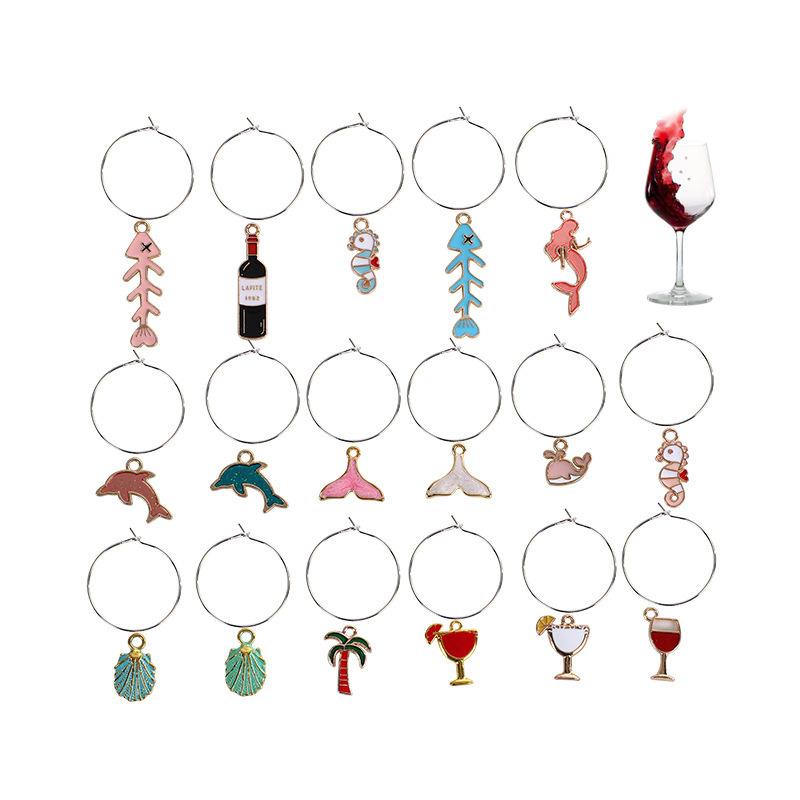 Alloy Pendant Accessories Starfish Sea Shell Gold Necklace Platinum Plated Cartoon Printing Electroplated Handmade Red Wine Rings