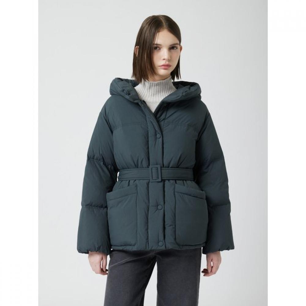 The CC Collect Hoody Belted Half Down C254PSG805 boasts a high level of insulation with 80/20 goose down and features a hoody design to keep the head and neck warm. The waist belt allows adjustments to create a feminine silhouette, and the dual fastening of the front zipper and buttons ensures warmth and practicality. The large out pockets provide an eye-catching element and boast high storage capacity.
