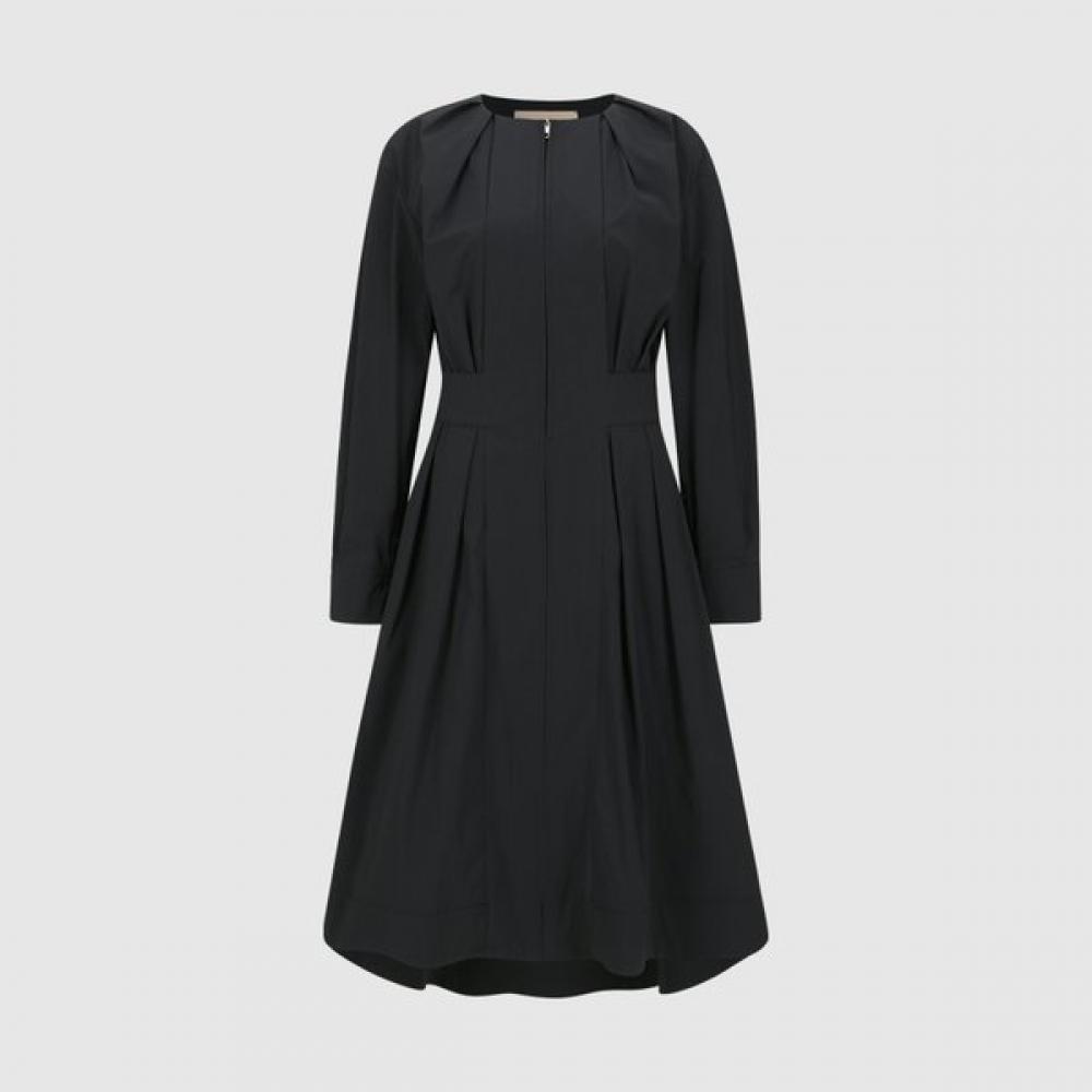The 24SS Cross Zip Pleated Hool Dress comes in an elegant black color, designed with a cross zip style for comfort when worn. This dress is suitable for various formal occasions and business casual looks, with the pleated design adding a touch of elegance.
