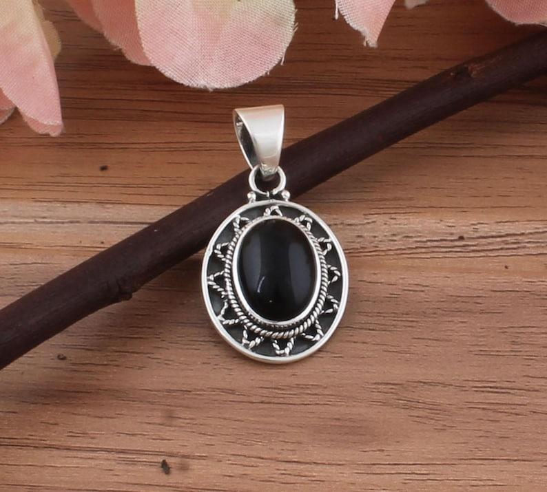 Solid 925 Sterling Silver Black Onyx Gemstone Pendant Healing Pendant Boho Jewelry Designer Pendant