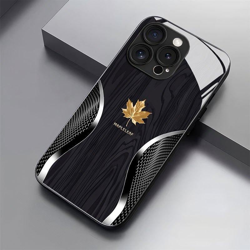Luxury Maple Leaf Wood Grain Curve Pattern Glass Phone Case For iPhone 17 16 15 14 Pro Max 13 12 11 16E 17Air 7 Plus XS X Cover