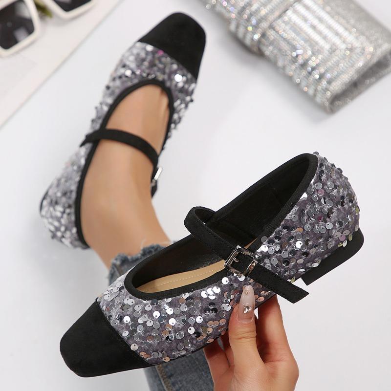 Fairy Style French Mary Jane Temperament with Skirt Flat Single Shoes Spring New Sequin Women's Shoes