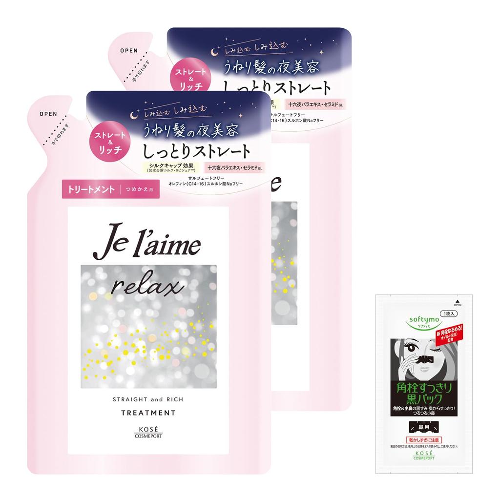 Jurem Relax Midnight Repair Hair Treatment Refill Set x Frizz Color Aromatic Jasmine Bonus Gift KOSE (Straight & Rich) (340ml 2) Moisturizing,