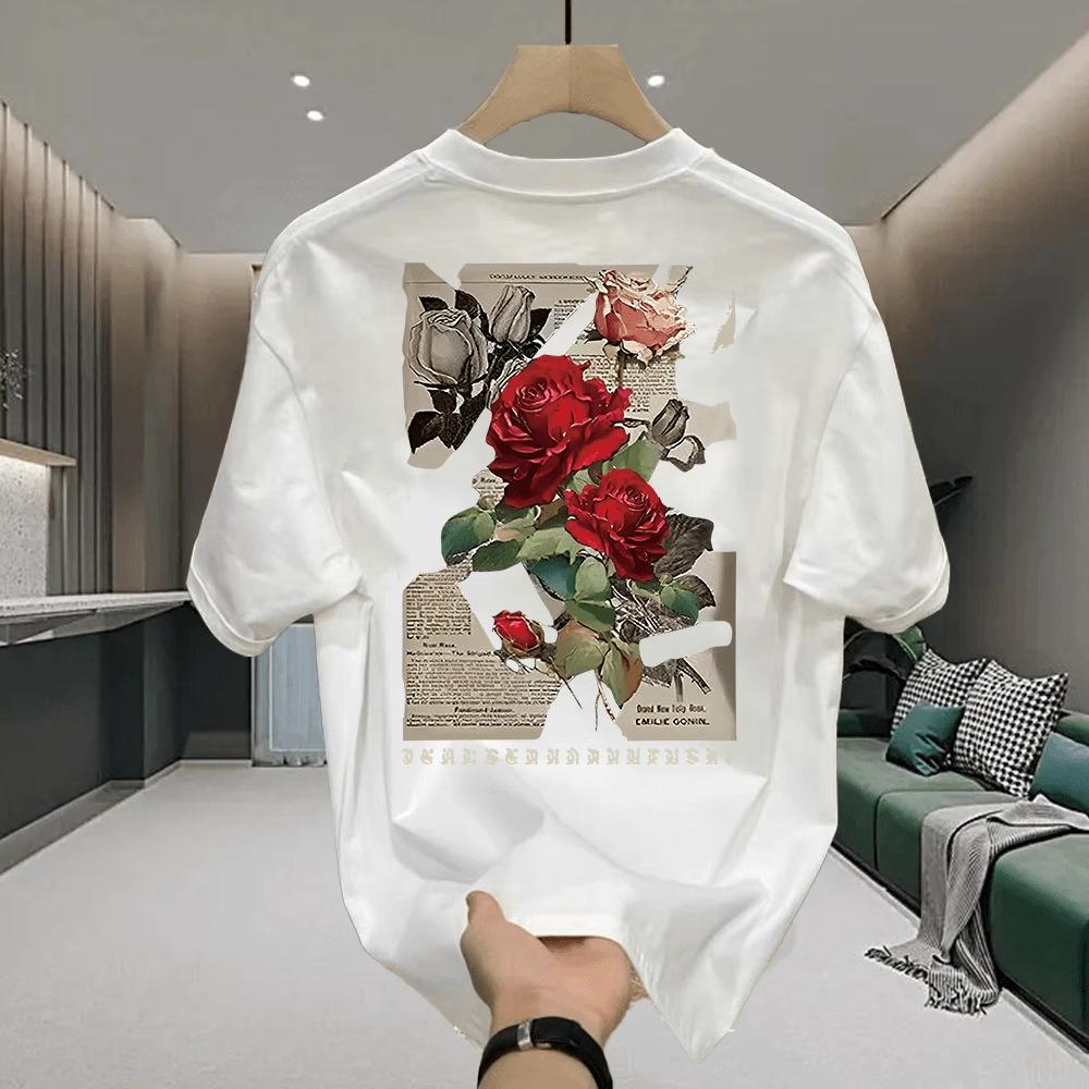Cotton Short-Sleeved Creative Rose Rabbit Printed T-Shirt Men'S And Women'S Same Personalized Versatile Crew Neck Top