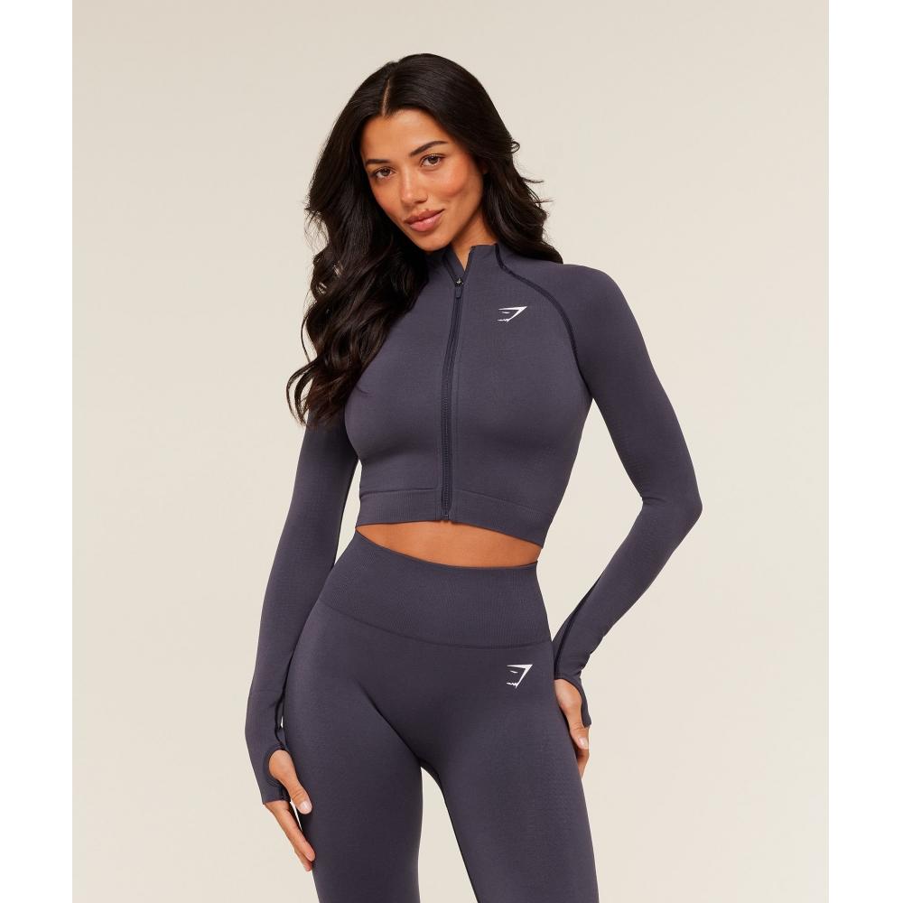Gymshark Jachetă Vital Midi cu Fermoar și Glugă Mov Închis Melanj B5a9q Pcd7