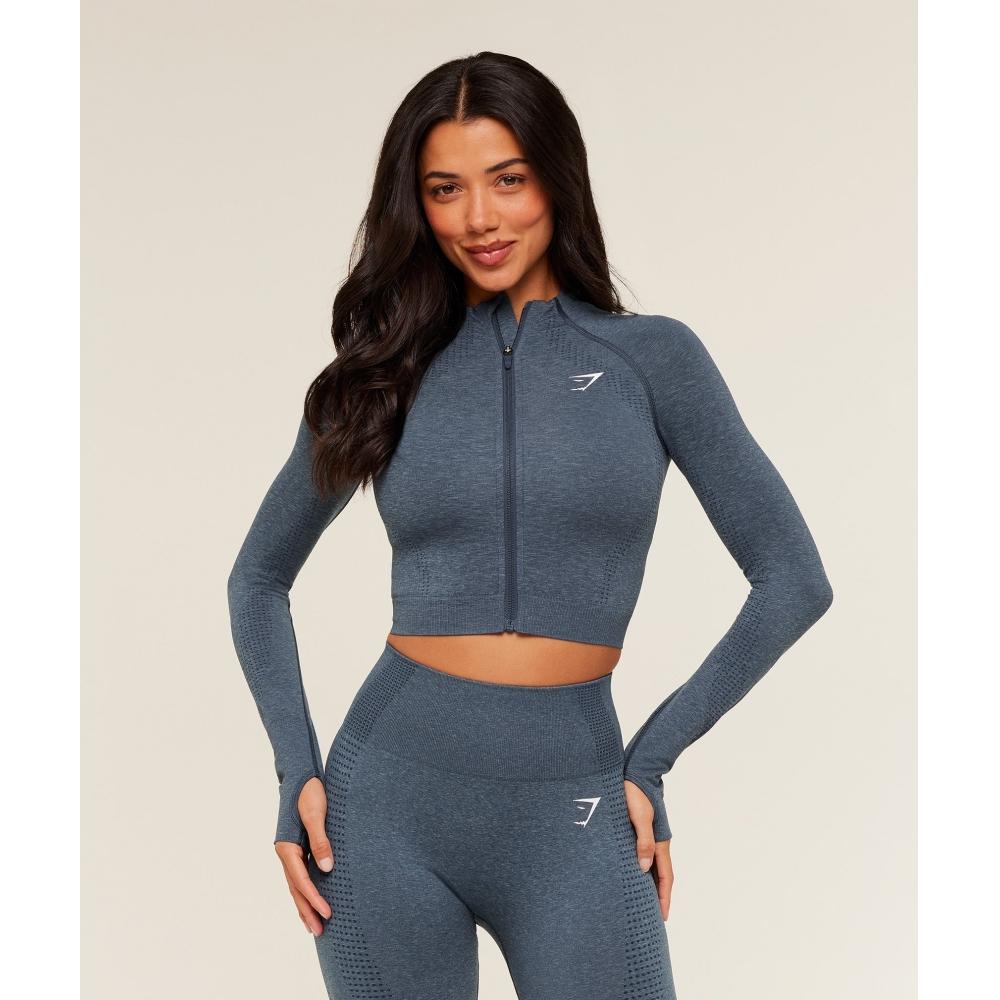 Gymshark Jachetă Vital Midi cu Fermoar Gs Albastru Stealth Melanj B5a9q Ud7x
