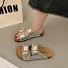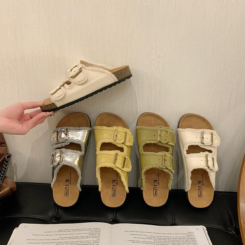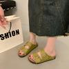 Fashion buckle one-word drag women's summer new versatile cool slippers lightweight muffin slippers