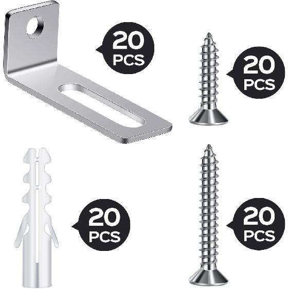 Oudain 20 Set Whiteboard Brackets Whiteboard tallation Hardware Kit Mounting Wall Hanging Brackets Include Hanger Supports, Screws, Expansion Tube