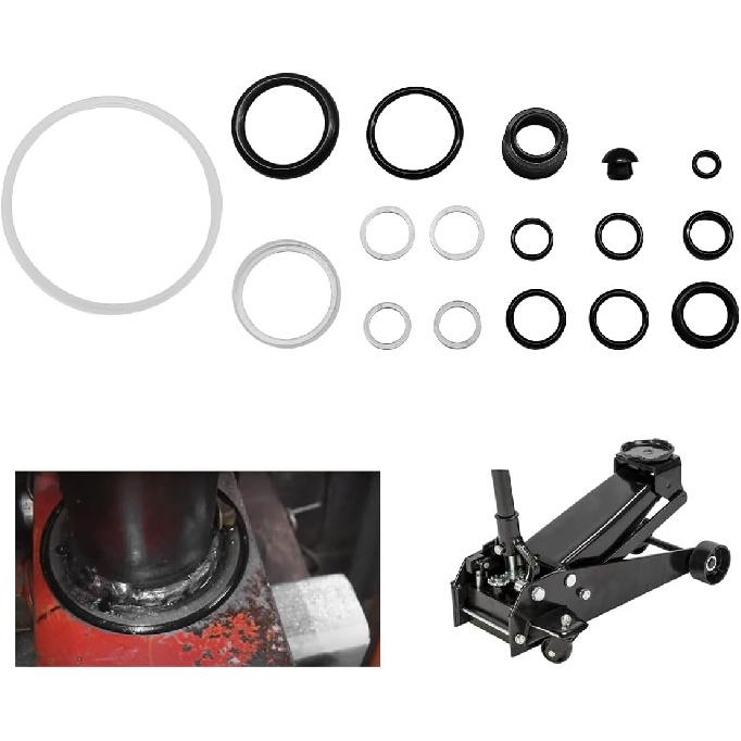 17PCS Floor Jack Seal Kit, 3 Ton Horizontal Hydraulic Jack O-Ring Seal with Oil Filler Plug, Complete Repair Set Rubber Sealing Rings Replacement