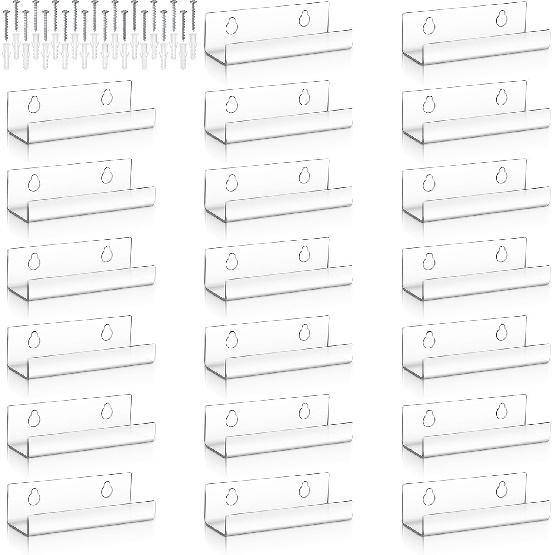 20 Pack Vinyl Record Display Shelf Wall Mount, 4 Inch Clear Record Holder Floating Shelves Acrylic Album Display Holder for Decorate Your Office Home