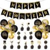 2026 Happy New Year Banner, Black and Gold Party Decorations New Year's Day Gala Party Decorations and Hanging Ornaments
