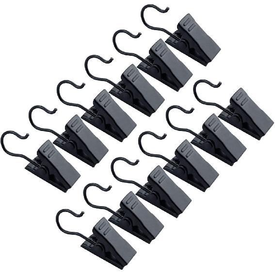 JANYUN 30 Pack Small Heavy-Duty Hook Clip Set Metal Curtain Hangers Clips for Clip Photo Home Decoration Art Craft Display - Black