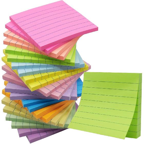 (24 Pack) Lined Sticky Notes 3x3 in Ruled Stickies Super Sticking Power Memo Pads,12 Bright Multi Colors Sticky Notes with Lines Self-Stick Note Pads