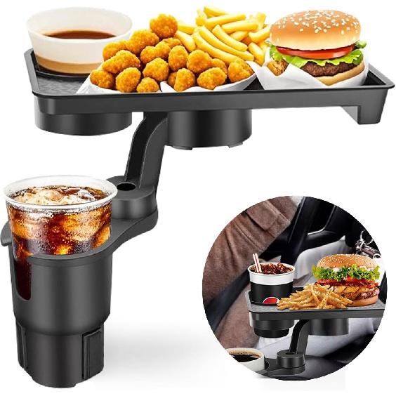 3-in-1 Car Cup Holder Tray, 10.24" Car Trays Organizer with Double Cupholders & Phone Holder for Eating, Travel