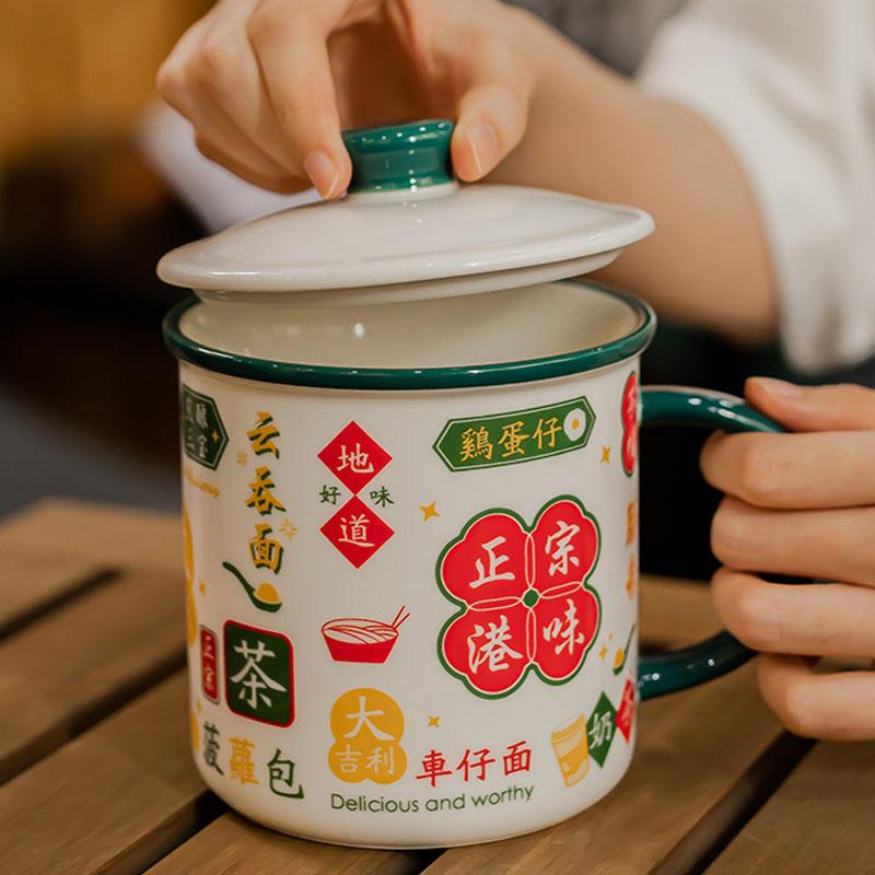 Chinese Style Retro Ceramic Cup with Lid Large Capacity National Trend Vintage Drinking Mug for Home Office