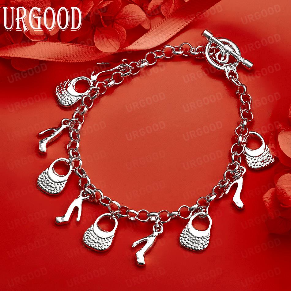 925 Sterling Silver Fashion Jewelry Shoes Bag Pendant Bracelet
