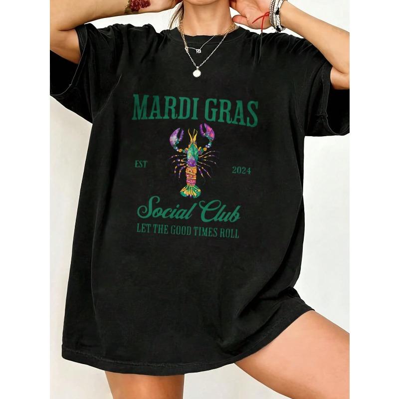 Black Oversized T Shirt Mardi Gras Social Club Lobster Print Let The Good Times Roll Party Festival Wear 2024